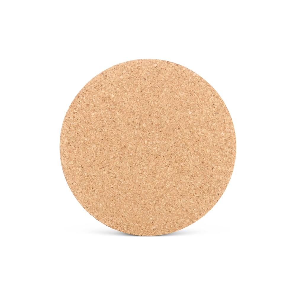 Porta-copos feito em cortiça com design sustentável e rústico, protege as superfícies contra líquidos e manchas.