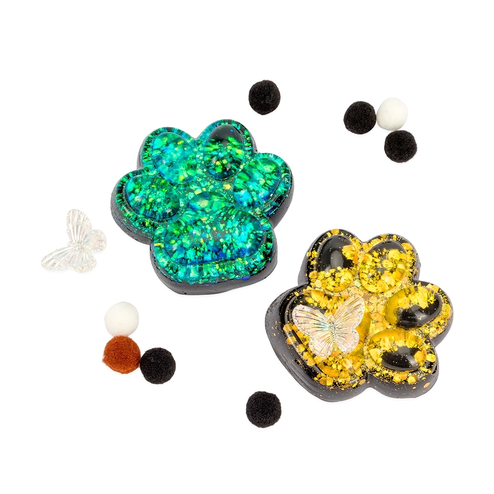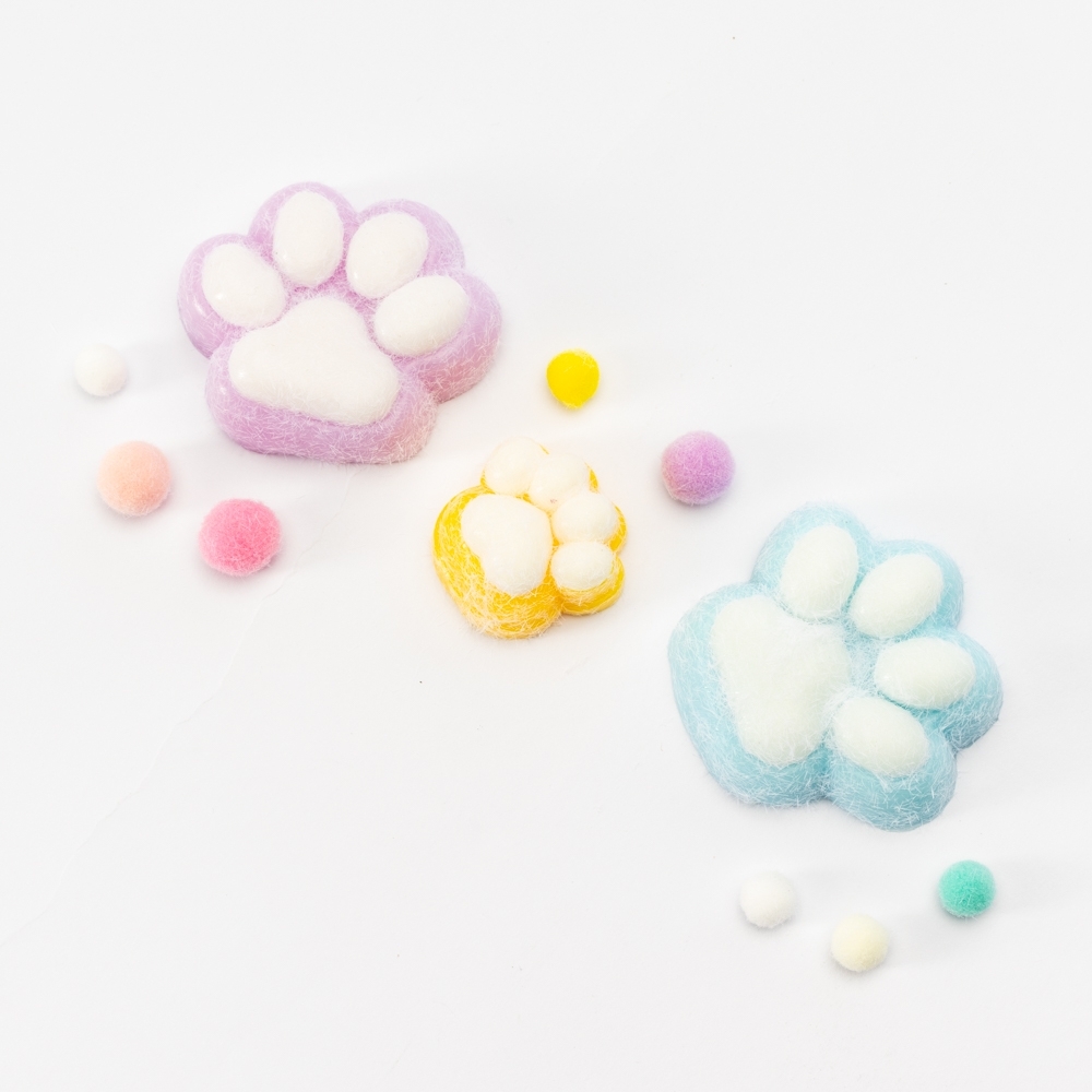 Brinquedo apertável antiestresse em formato de pata estilizada. Cada embalagem contém duas unidades em tamanhos diferentes. Produzido em borracha termoplástica de textura lisa e macia, que adere facilmente a superfícies planas. Acompanha bolinhas decorativas em pelúcia.