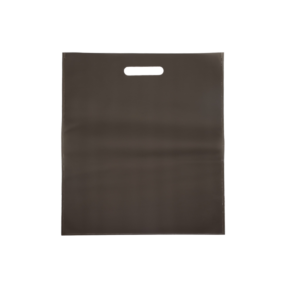Sacola TNT metalizada 110g/m² com botão. Confeccionado em TNT com revestimento plástico laminado, parte superior possui botão plástico para fecho.