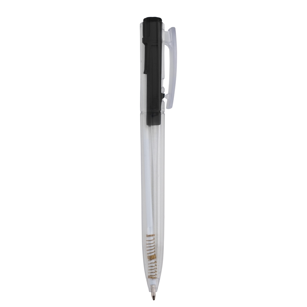 Caneta plástica translúcida com carga esferográfica azul e acionamento por clique. OBS.: PEDIDOS MÍNIMO DE 50 PEÇAS!