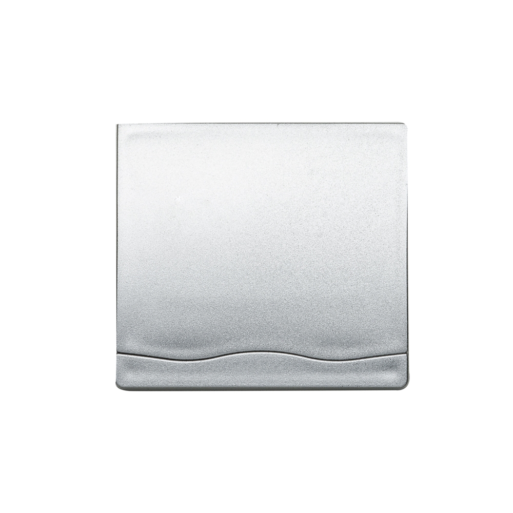Espelho retangular duplo sem aumento, material em plástico resistente com uma faixa na superfície e verso liso.
