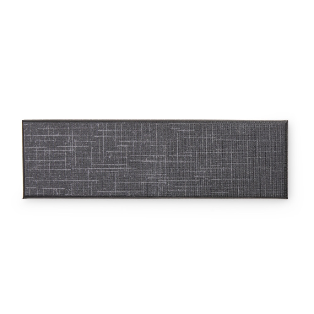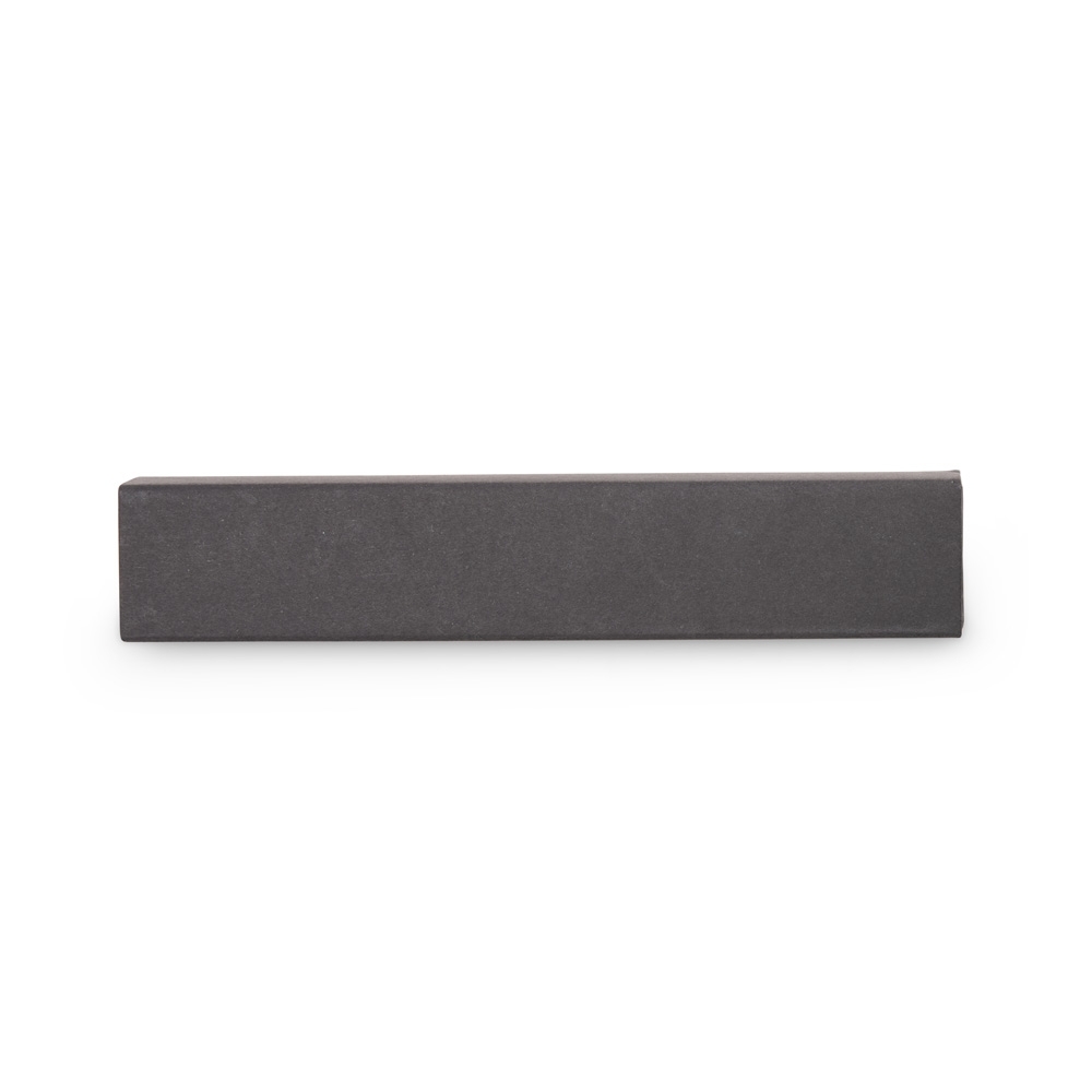 Estojo feito em papelão e revestimento interno removível de camada dupla em espuma com espaço para acomodar uma caneta ou lapiseira.